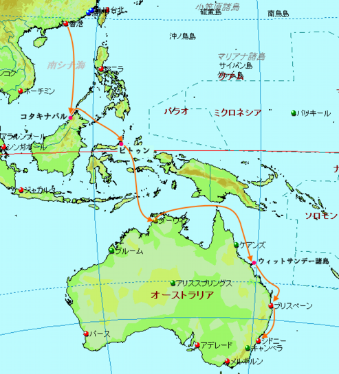 今回のクルーズは香港発シドニー着で、世界一周クルーズの区間乗船となっています。