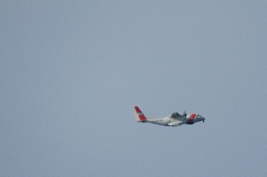最初に飛んできたのはコースとガードの飛行機で収容作業が完了するまで本船の周りを旋回。遅れること15分でヘリが来たが2度着陸をやり直し3度目に成功した