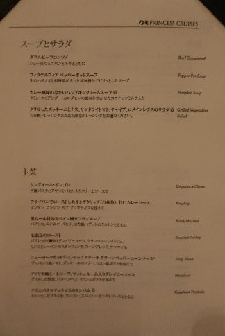 クラブクラスのメニューです