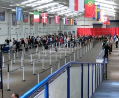1-9.乗船は12時前に出来たが、キャビンに通じる10階の通路の入り口は閉鎖、午後1時オープンとの表示。