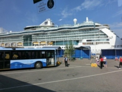 1)朝8時入港、8時45分に上陸、ここでは現地のシャトルバス利用、乗車口で購入(何回往復してもOK10ユーロ)