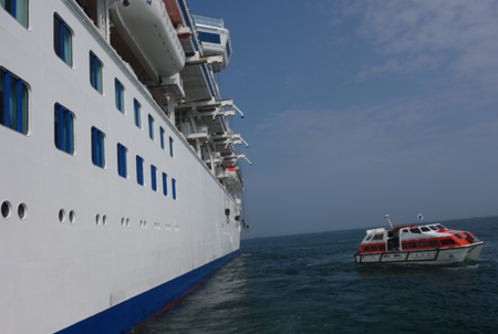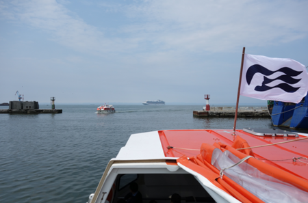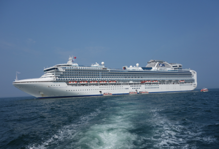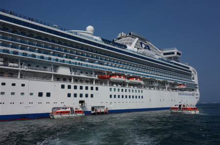ダイヤモンドプリンセスから遠ざかっていくテンダーボートより撮影
