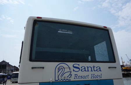 バスが最終のバック時、最後部の窓が鉄の柱にぶつけてしまったのです。