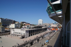 客船はウラジオストク駅の前に着岸しています。真ん中の写真は建物の壁がないため後ろが透けて見えているビル。
