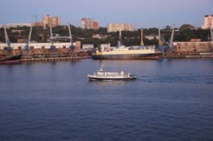 上の写真は、展望台から撮影したウラジオストクです。軍港ということもあり、客船が停泊している近くに軍艦もいます。