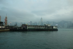 一旦、部屋に戻ってシャワーを浴びると8時本船出港。雨にかすむ夜霧の香港をベランダから楽しむ。