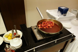 1. 目の前でイチゴを砂糖汁でいため、アイスクリームをトッピングするのをクルーズ船で初めて食した。グッド!