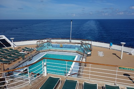 明日の入港時間を考慮してかゆっくりと船は進んでいく。デッキに出ると暑い。