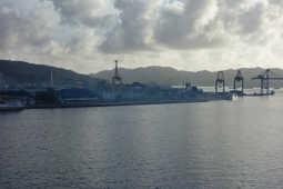 理由が分かった、本船は沖泊でテンダーボートで上陸予定が岸壁に接岸に変更さ れたのである。