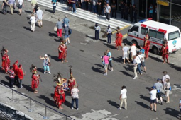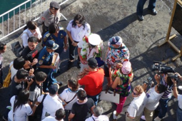 さあ、接岸した。 にぎやかの衣装をまとった一団に音楽と踊りで歓迎された。