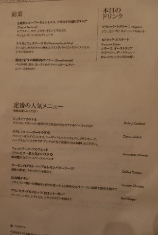 クラブクラスのメニューです