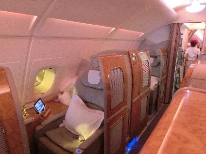 この便はA380なのでシャワーがありました。キャビンアテンダントが挨拶しながら予約を取りに来ます。