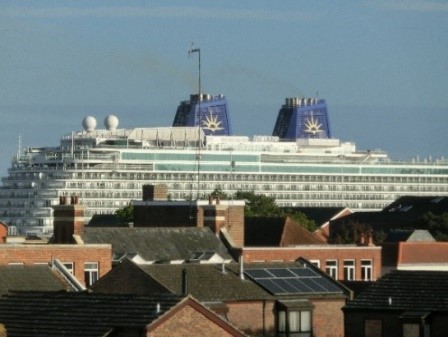 部屋からP&Oのブリタニア号のオーシャンターミナルに停泊しているのが見えます。