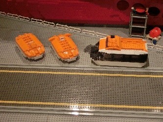 しかもQM2がドック入渠中で作業が行われているところを再現しているので労働者や設備まですべて本物そっくりにレゴで作成されているのには驚かされます。