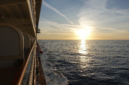 部屋にもどって調べると20ノット以上で航走していた。やはり、寄港地変更で時間がタイトになっているのだろう