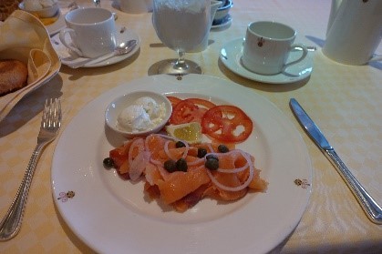 朝食はゆっくりと9時過ぎから。今朝はオムレツ、トースト、ヨーグルトにしてみた。あとは、毎日同じで生搾りたてオレンジジュース2杯、フルーツヨーグルト1つ、アールグレイティ