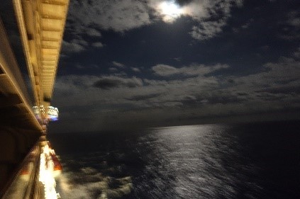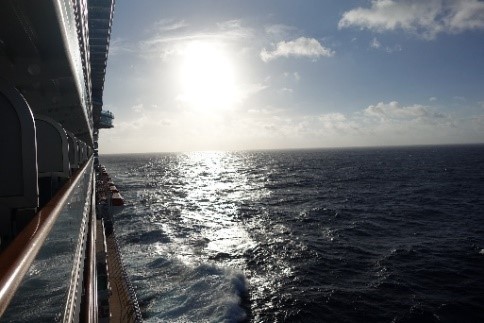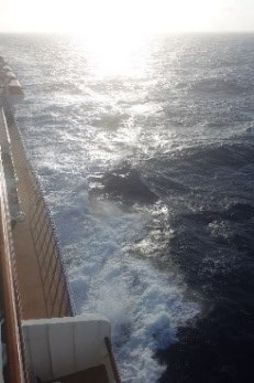 ところで、今日は大西洋で一番高くそびえる海嶺(海底にある山脈)のところを通過するとキャプテンアナウンスがありました。でも、見えないので仕方がないです。