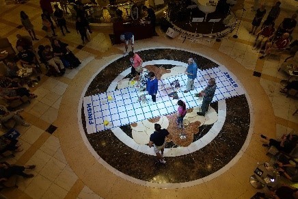 5階のThe Piazza 広場ではさいころをふって進む競馬ゲームをしていました。