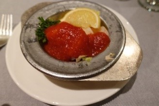 今晩は海老という名前がが含まれているものを頼みました。シュリンプカクテル、エビ入りスープ、そして最後がロブスターを注文してエビを堪能しました。