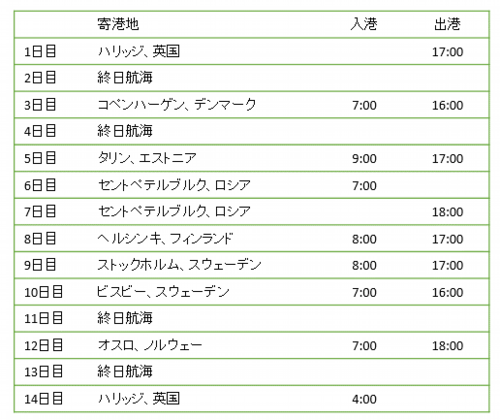 今回のクルーズはイギリス発着の北欧クルーズです。