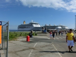 1)朝7時入港、埠頭右舷には、懐かしいレジェンドオブザシーズが、その右隣の埠頭にはP&Oのオーロラ号が、