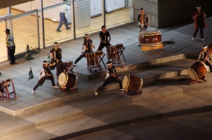 長崎を出港する前に和太鼓のチームが見送りの演奏が行われました。