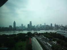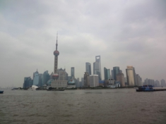 下船後、バスに乗って40分ほどで外灘に到着。黄浦江を挟んでテレビなどでよく見る風景のテレビ塔や上海ヒルズ等が一望できます。