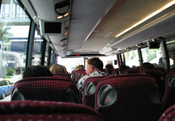 下の写真はシャトルバスの中の風景です。年配の人ばかりかなって想像してましたが、
