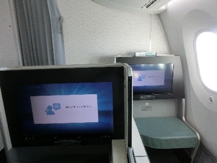 この便はA380なのでシャワーがありました。キャビンアテンダントが挨拶しながら予約を取りに来ます。