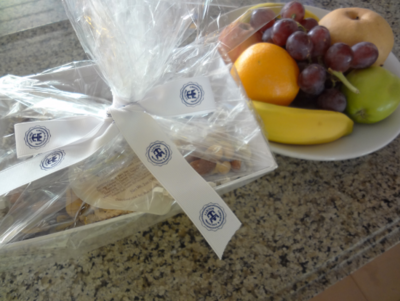 Barコーナーの上にはフルーツとお菓子の詰め合わせのギフトが置かれていました。