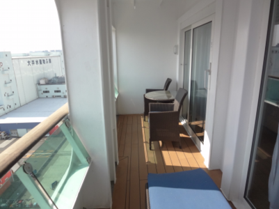 窓を開けて、ベランダに出た様子が以下の写真になります。