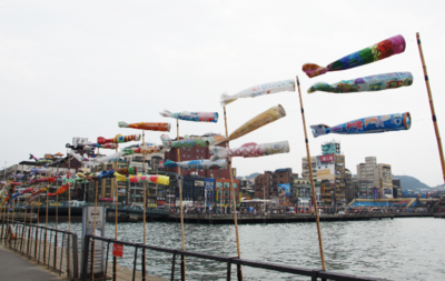 港では風に乗って、たくさんの鯉のぼりが泳いでいて、ゆっくりと散策するのにも